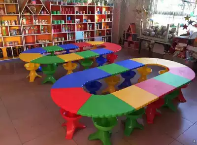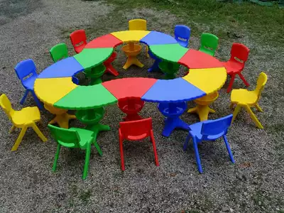 Kindergarten table and chair set children plastic fan assembly table chair early education Home Baby writing toy table