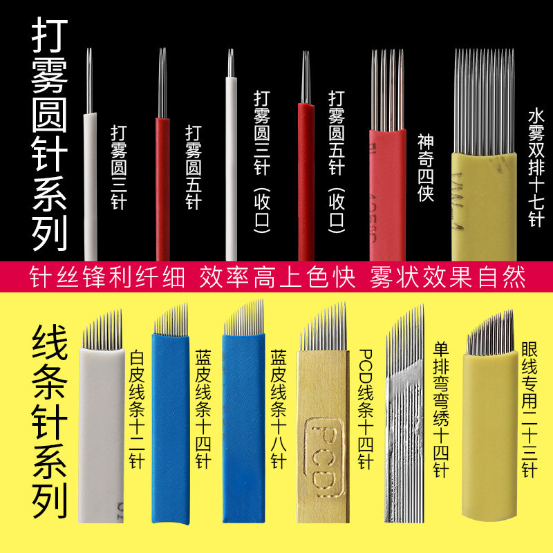 Half permanent tattooing embroidered needle sheet handmade fog brow with three round five-grain embroidered needle with fog bent and embroidered disposable-Taobao