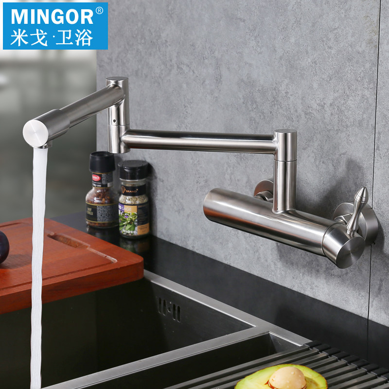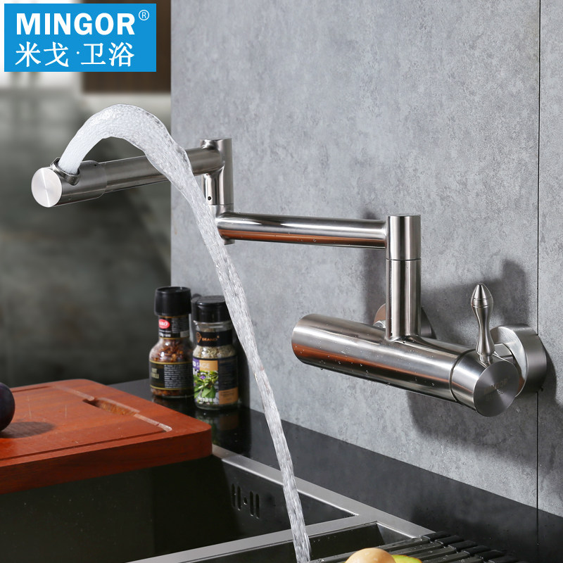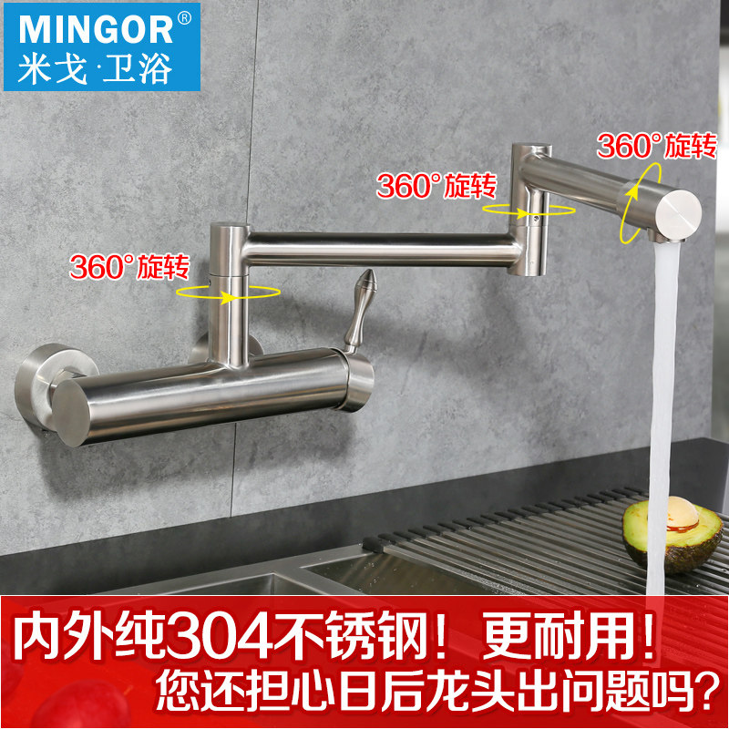 MINGOR wall-mounted faucet Hot and cold 304 stainless steel kitchen sink laundry basin folding rotating faucet