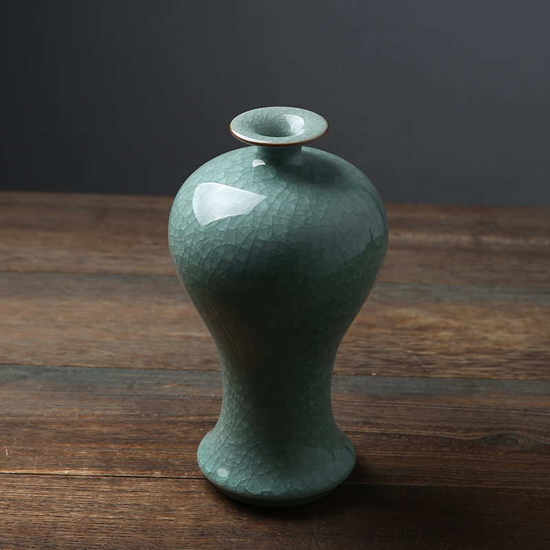 Ye Xiaochun All-handmade works Qingporcelain Gothic kilns Ice cracks Beauty Drunk Plum Bottle Floral Home Swing Accessories Collection