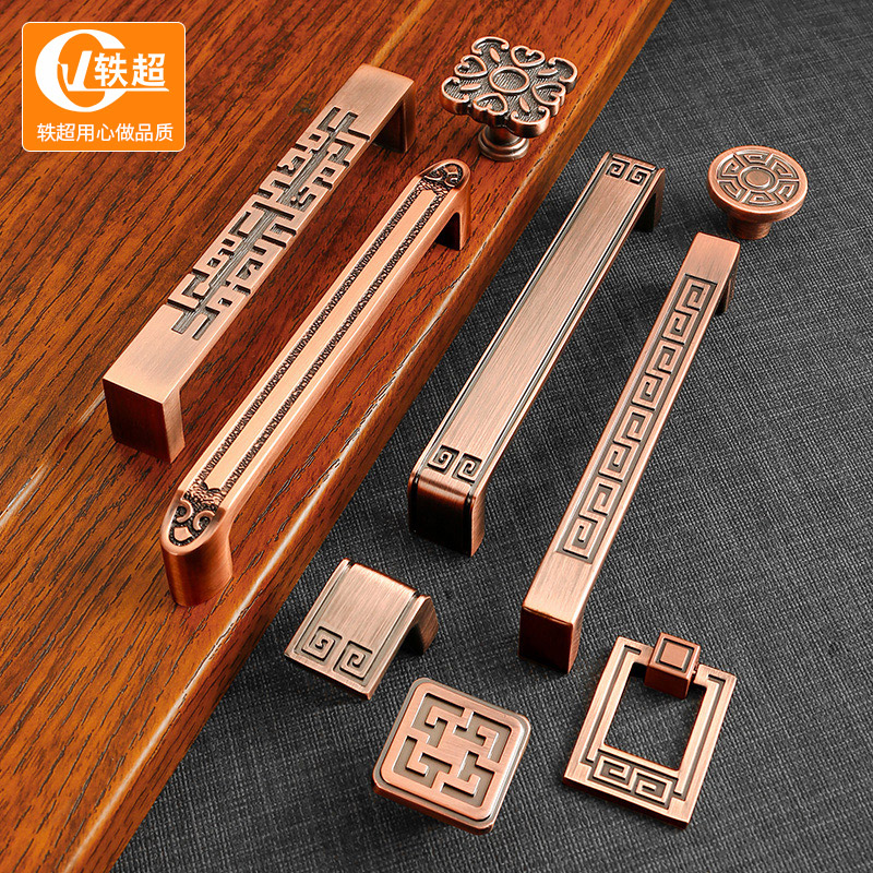 Chinese-style cabinet door red bronze handle wardrobe cabinet door handle European-style drawer cabinet handle furniture hardware handle