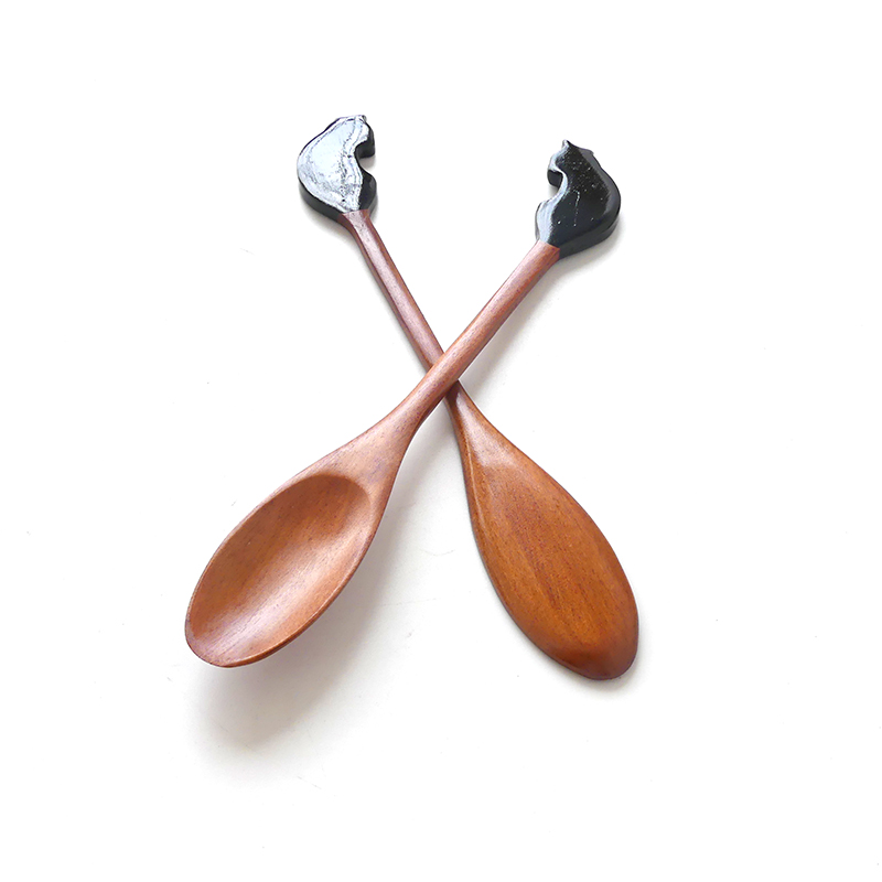Day Style Wooden Spoon Creativity Small Cat Handle Cartoon Stirring Spoon Commercial Long Handle Sweet Spoonful Spoon Field Wind Log Cutlery