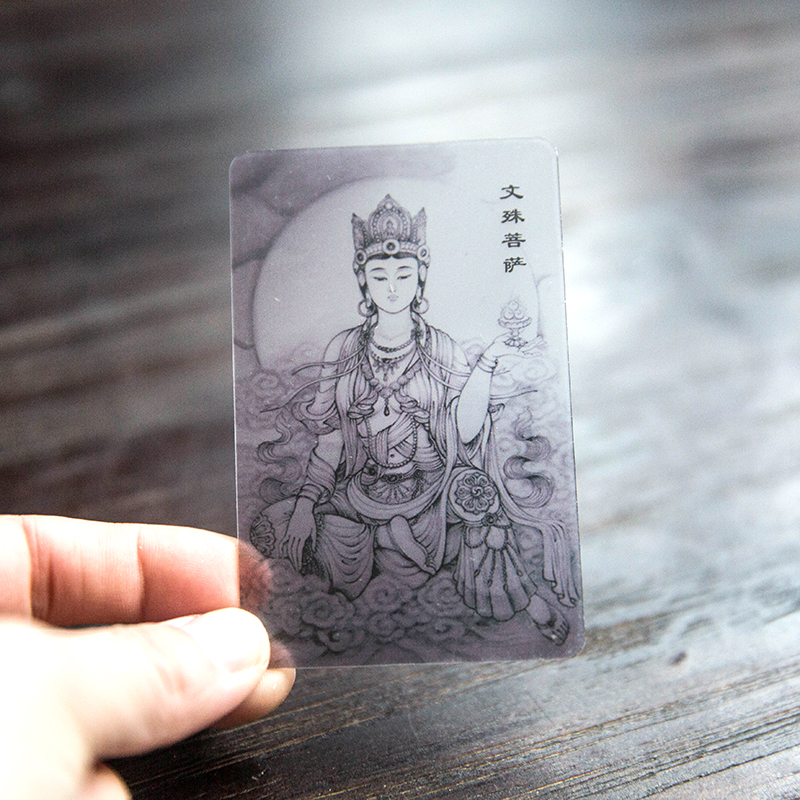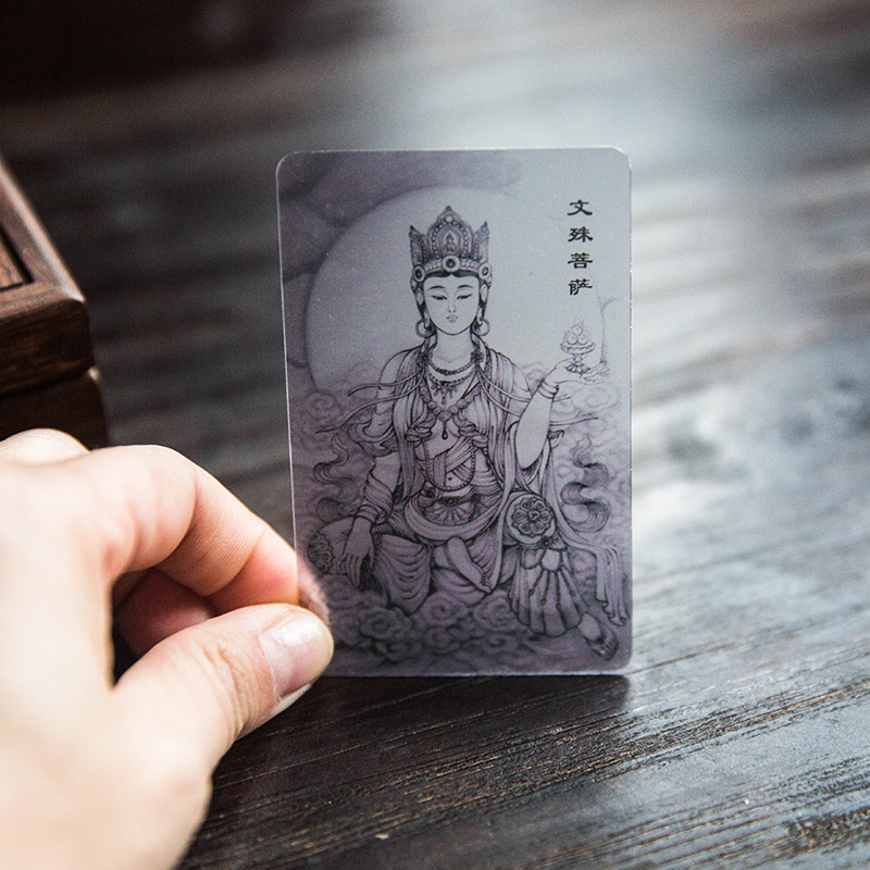 Jiuhua Mountain prays for blessings and sprinkles net bodyguard card Manjusri Bodhisattva body card Buddha card Benming year Buddha card Buddha statue