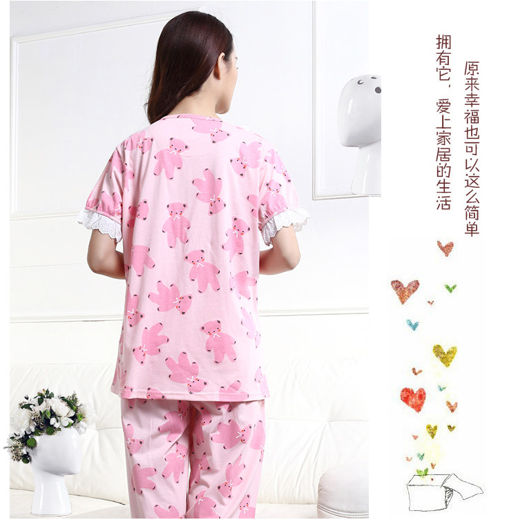 New Sleepwear Woman Summer Pure Cotton Slim Home Suit Summer Lady Short Sleeve Full Cotton Big Size Cartoon Stay-at-home Clothing