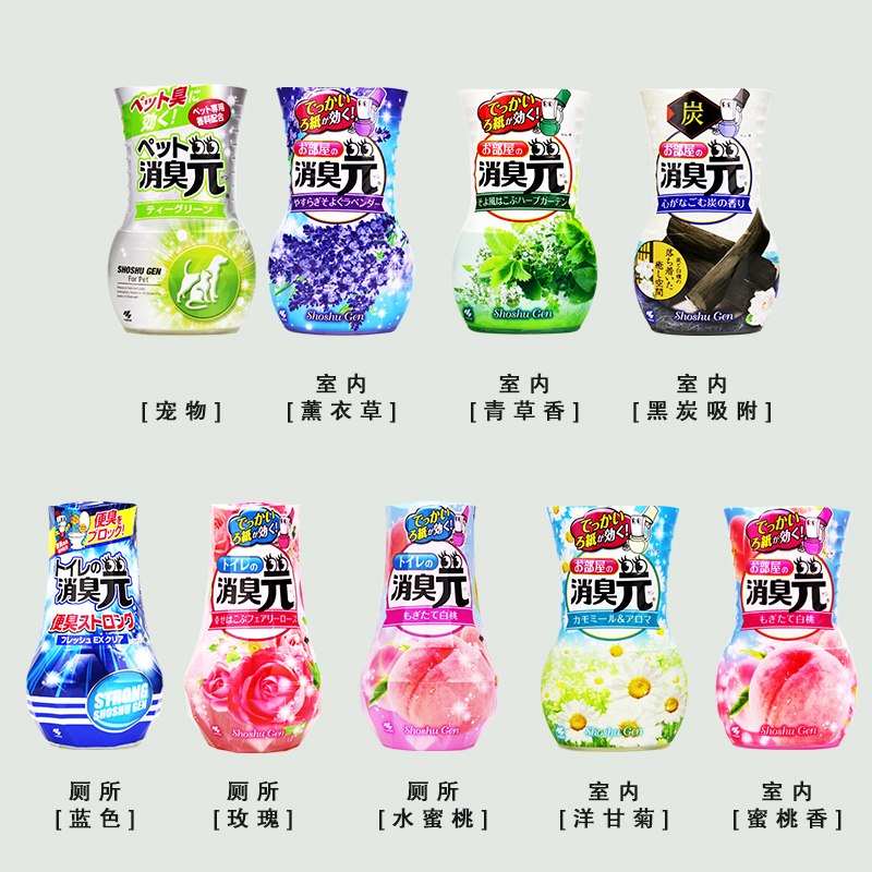 黑炭吸附(室内)玫瑰香(室内)薰衣草花香(室内)微风草本花香(室内)洋甘菊(室内)祛除宠物异味(室内)除烟味(室内)蜜桃