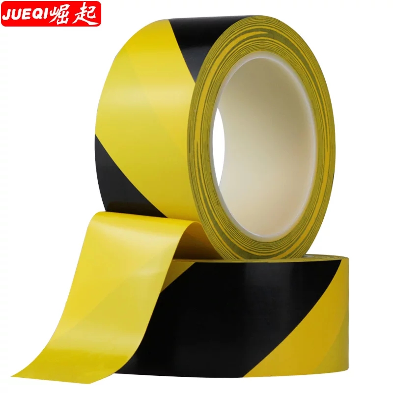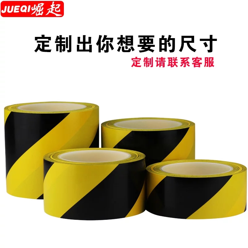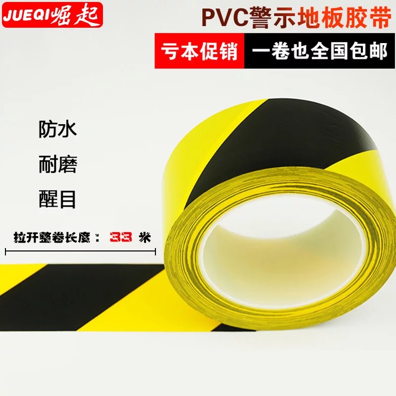 PVC warning warning isolation line tape Color identification floor scribing ground marking landmark line tape Waterproof wear-resistant zebra tape Black and yellow 5cm fire channel safety line Floor adhesive tape