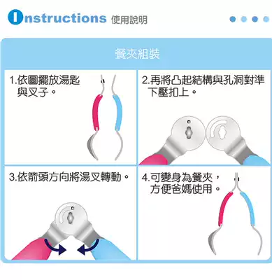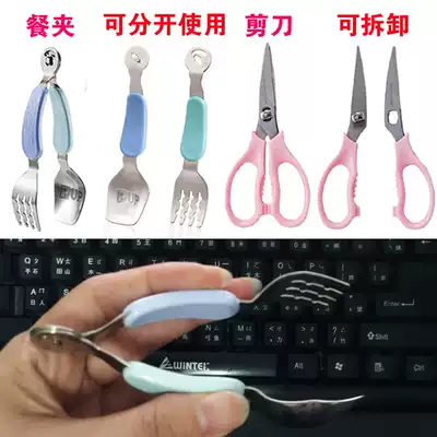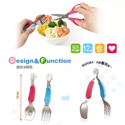 Taiwan direct mail imported stainless steel baby food scissors Food clip spoon fork set Removable with box