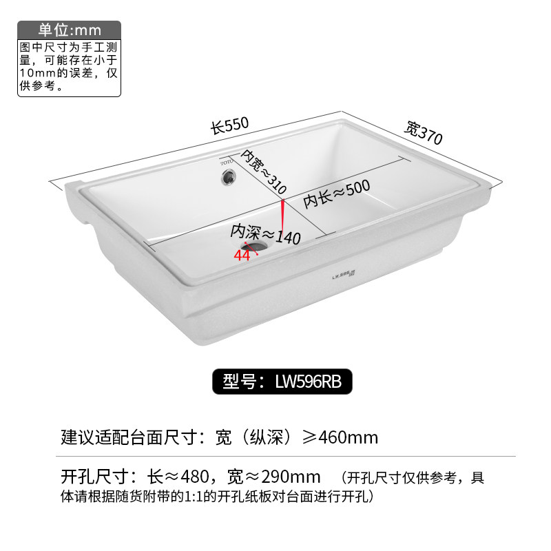 LW1535B 500 * 380 square single sink LW596RB 550 * 370 square single sink package 1