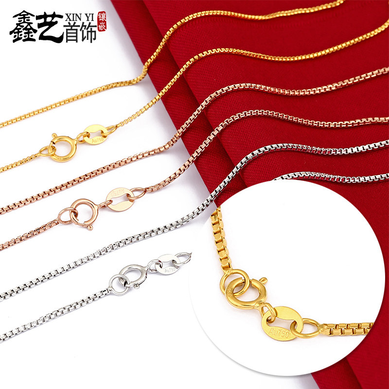 K gold necklace women fashion box chain all match white gold color gold rose gold necklace women 18k collarbone