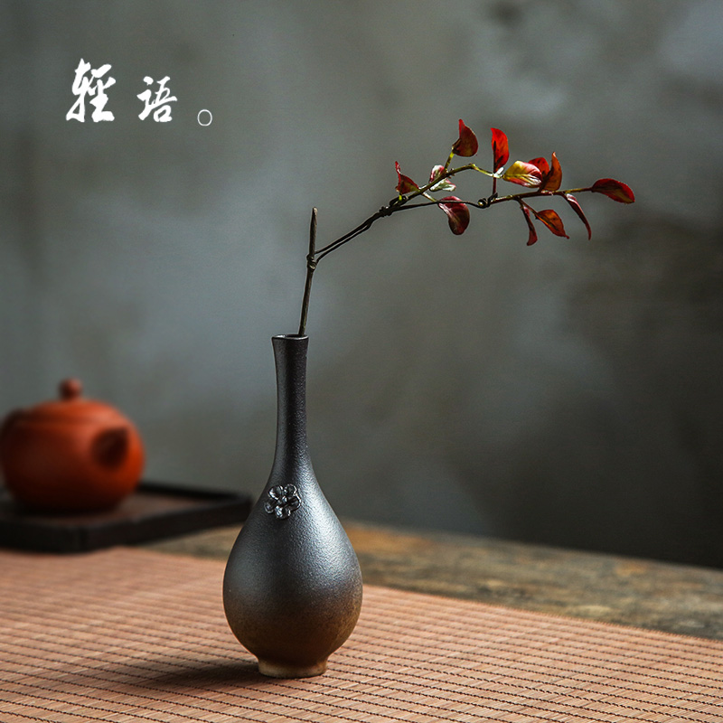 Ugliness Coarse Pottery Vase Ceramic Adornment Retro Black Glazed Dry Flower Illustrator Living-room Home Pendulum