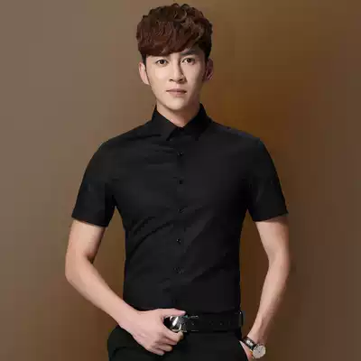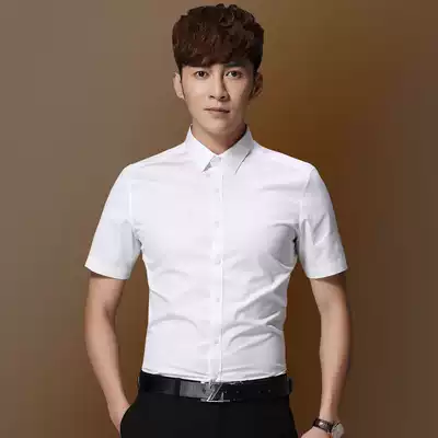 Summer light blue shirt Men's Korean slim-fit business formal solid color youth small collar free ironing tooling Wedding white shirt
