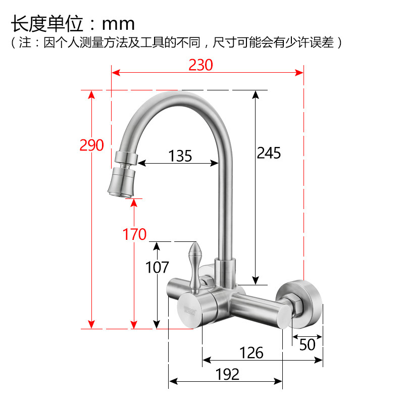MINGOR enter wall kitchen cooling and hot tap 304 stainless steel washing pool washing pool to rotate faucet