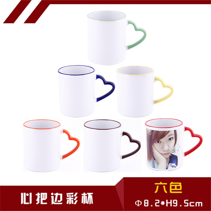 HOT TRANSFER COLOR MOUTH CUP WHITE CUP COATING HEART-SHAPED Side Color Cup Personality DIY Custom Intu mouth COLOR MUG