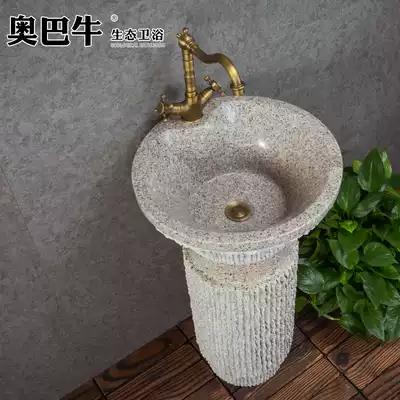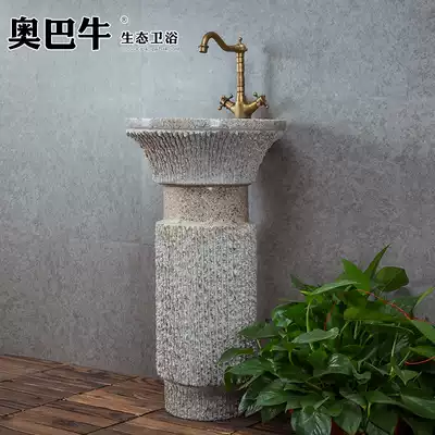 Stone outdoor European style column Basin Creative Villa marble round wash basin balcony bathroom washbasin sink