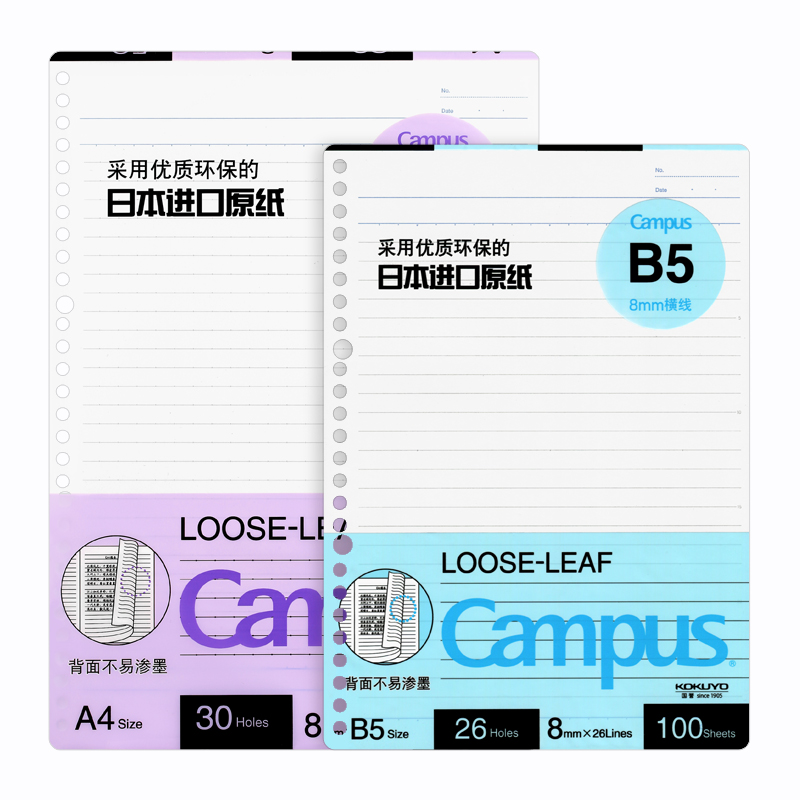 National reputation KOKUYO loose leaf bentecore Campus20 holes 26 holes 30 holes pane blank crosswire point line student loose-leaf paper A4 B5 A5 A5 page clamps adapt inner core
