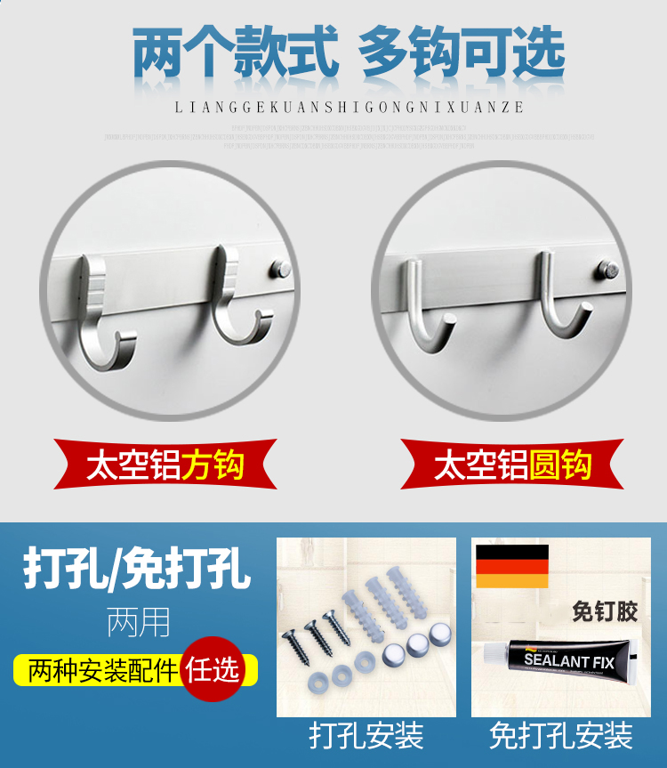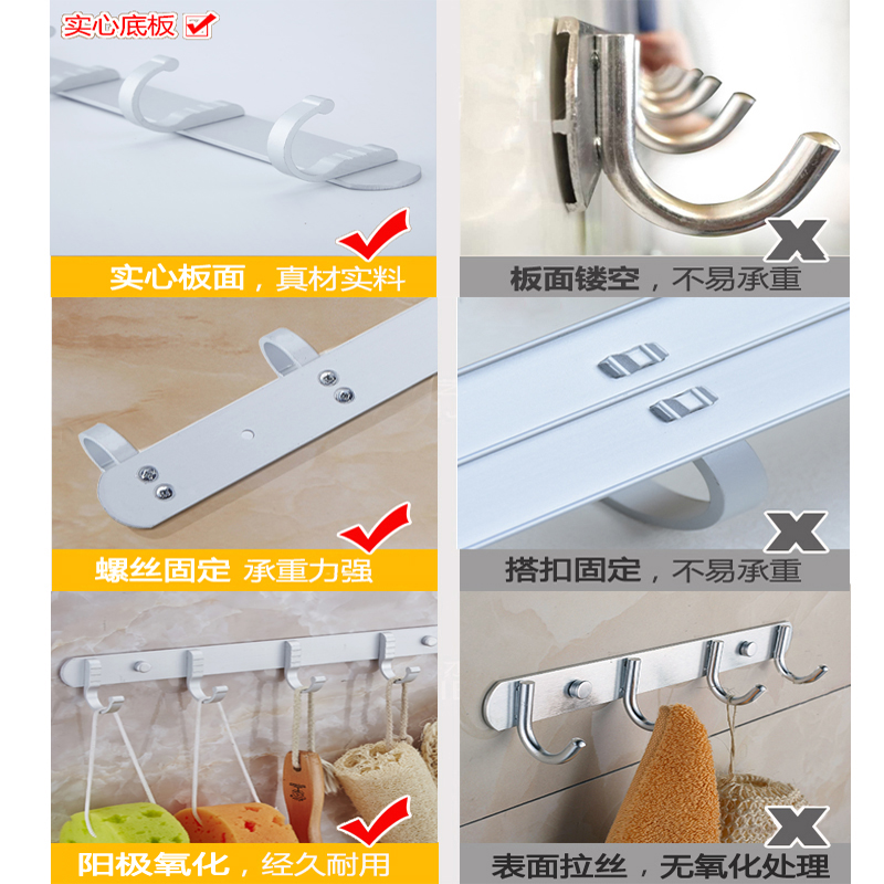 Space aluminum clothes hook clothes hook free punching row hook bathroom towel hook wall hanging bathroom clothes rack