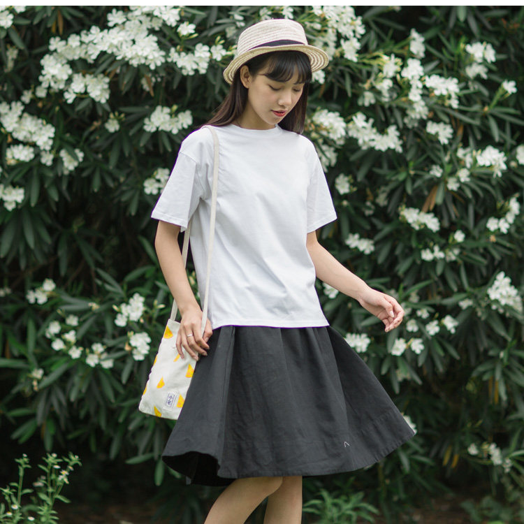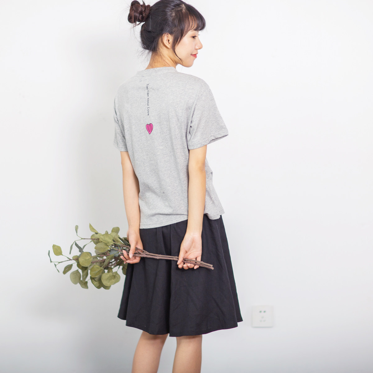 MH pure cotton round neck T-shirt behind flowers summer ladies short sleeve fresh girl top
