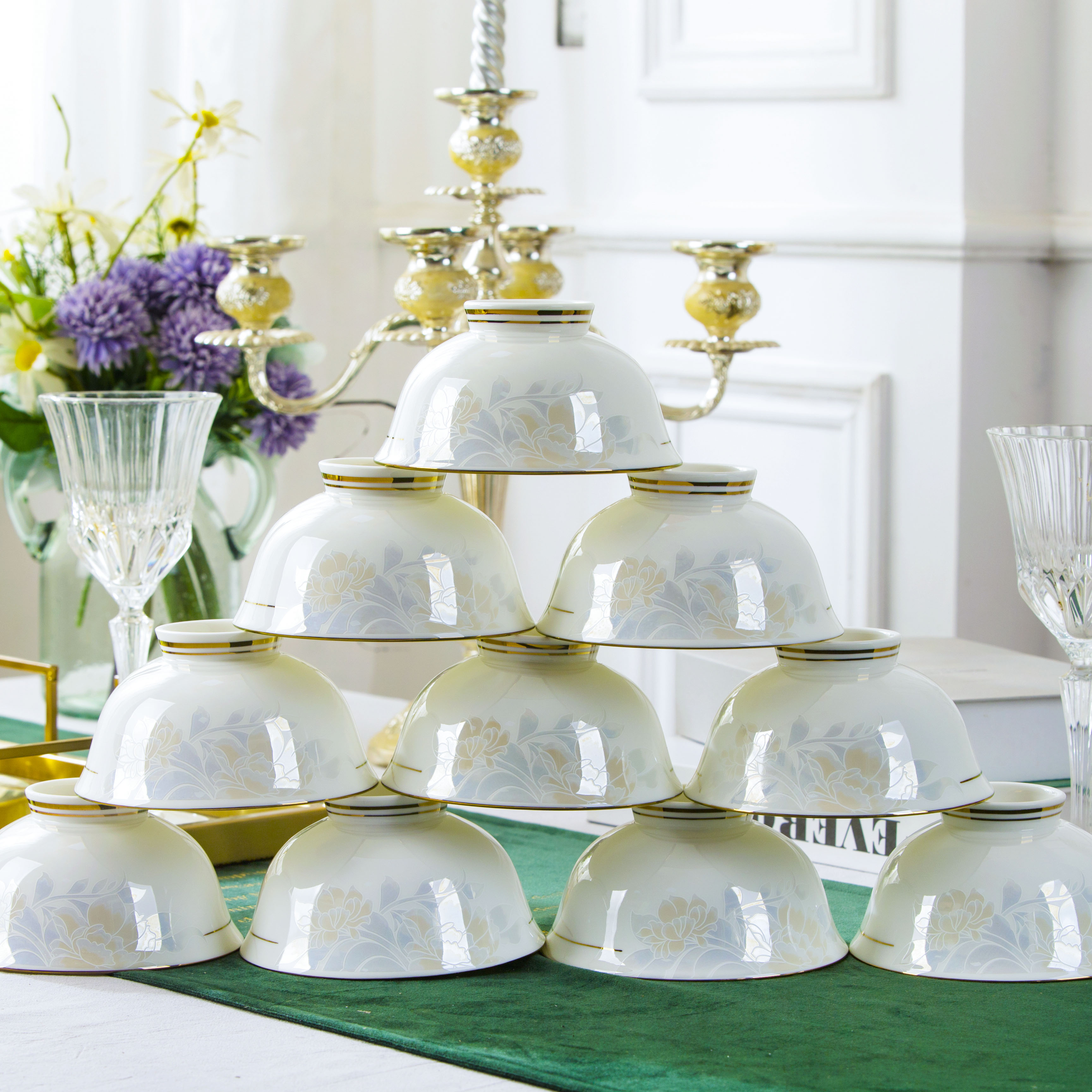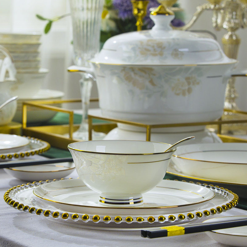 Bowl Dish Suit Home Nordic Bone Porcelain Tableware Jingdezhen Light Lavish Ceramic Phnom Penh Bowls Tray Chopsticks Combined 60 Pieces Bowl