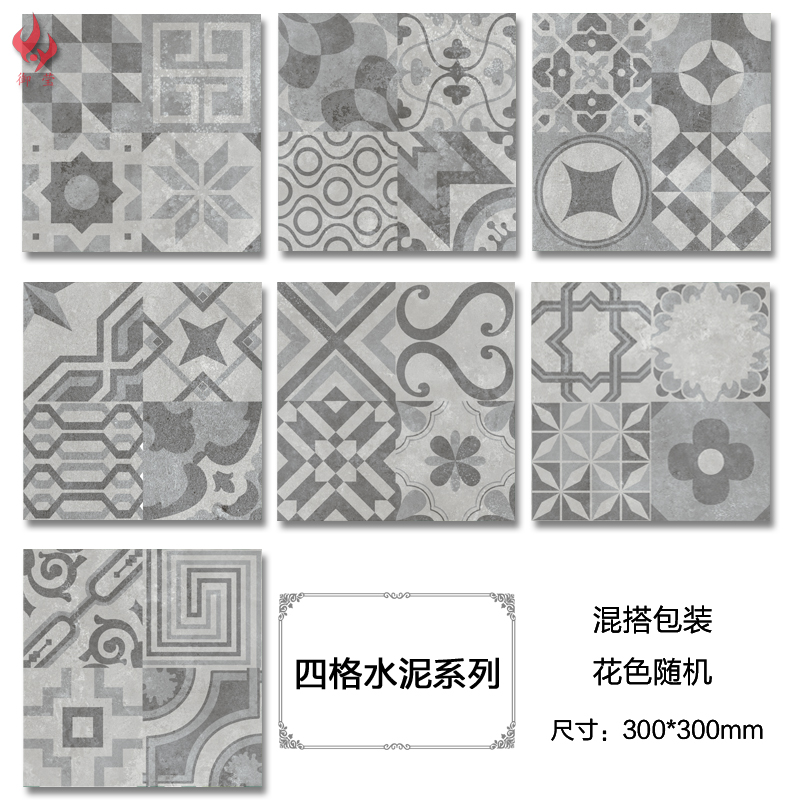 Four-grid cement tiles 300 antique living room kitchen powder room balcony tiles flower pieces vintage art floor tiles