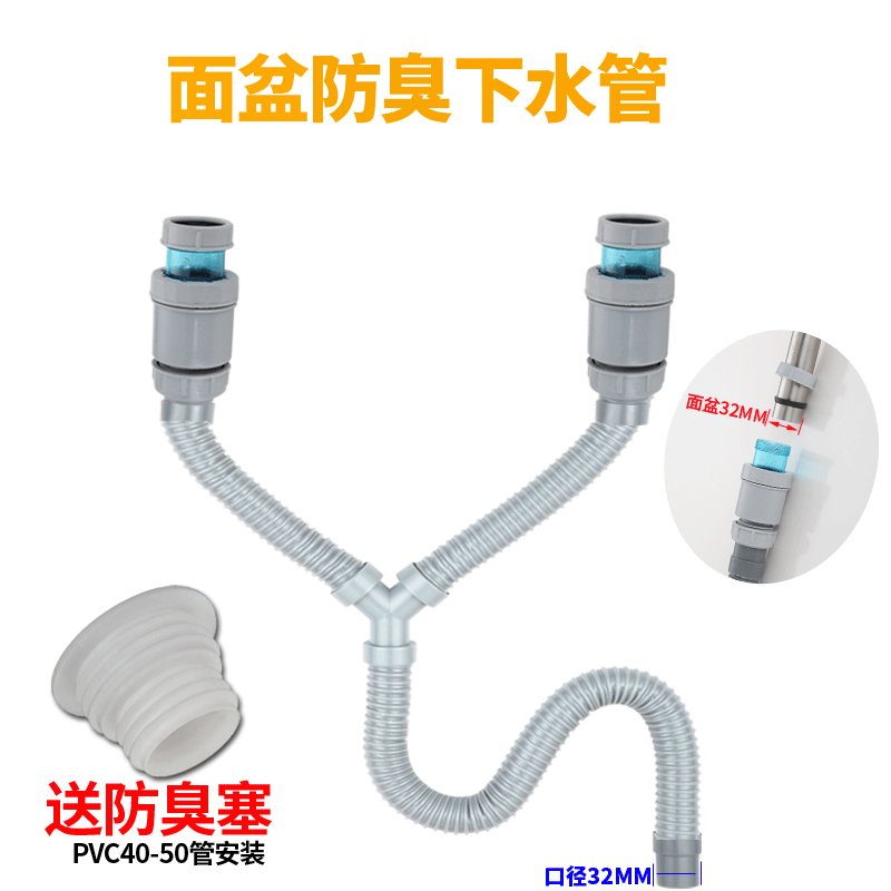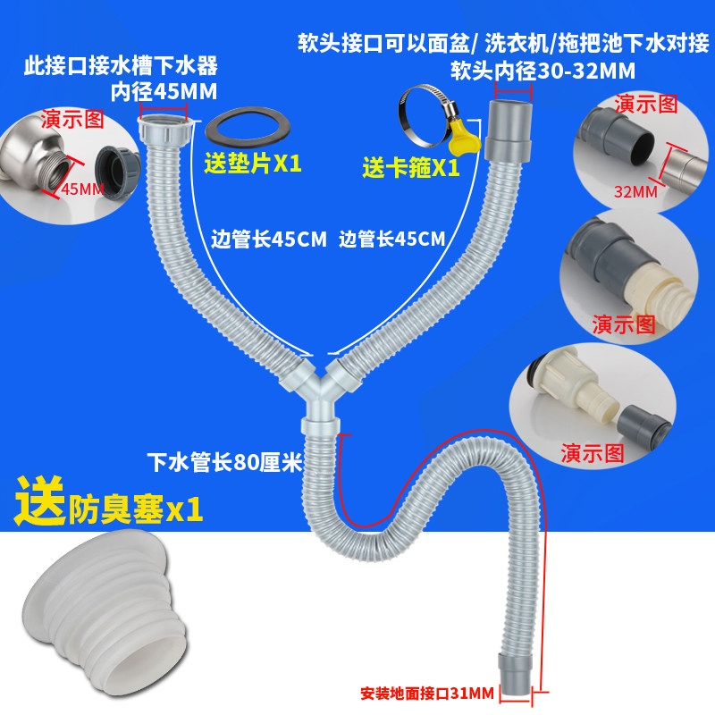 Noodle basin extended three-way hose Y-pipe double washing machine double-sided basin sink drag pool anti-odor sewage pipe