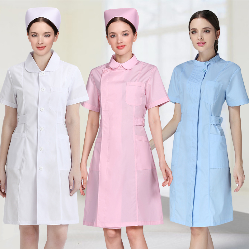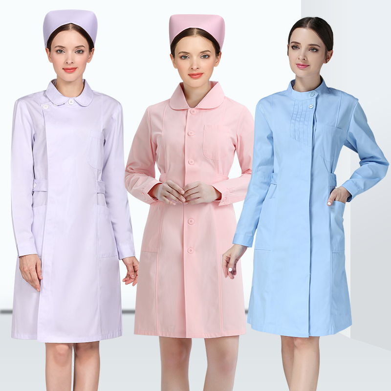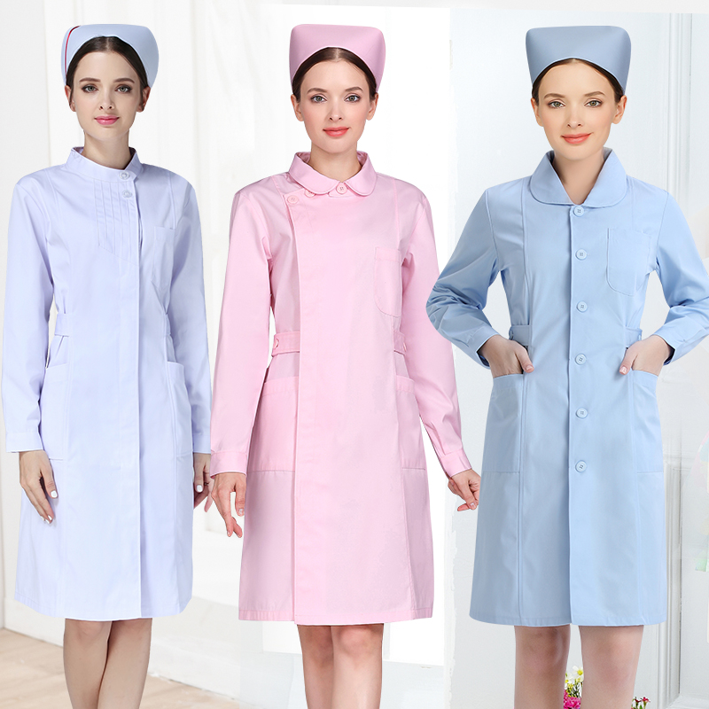 Nurse serving long sleeve female winter style pink white large coat medical student round collar beauty medicine shop health care uniform work clothes winter