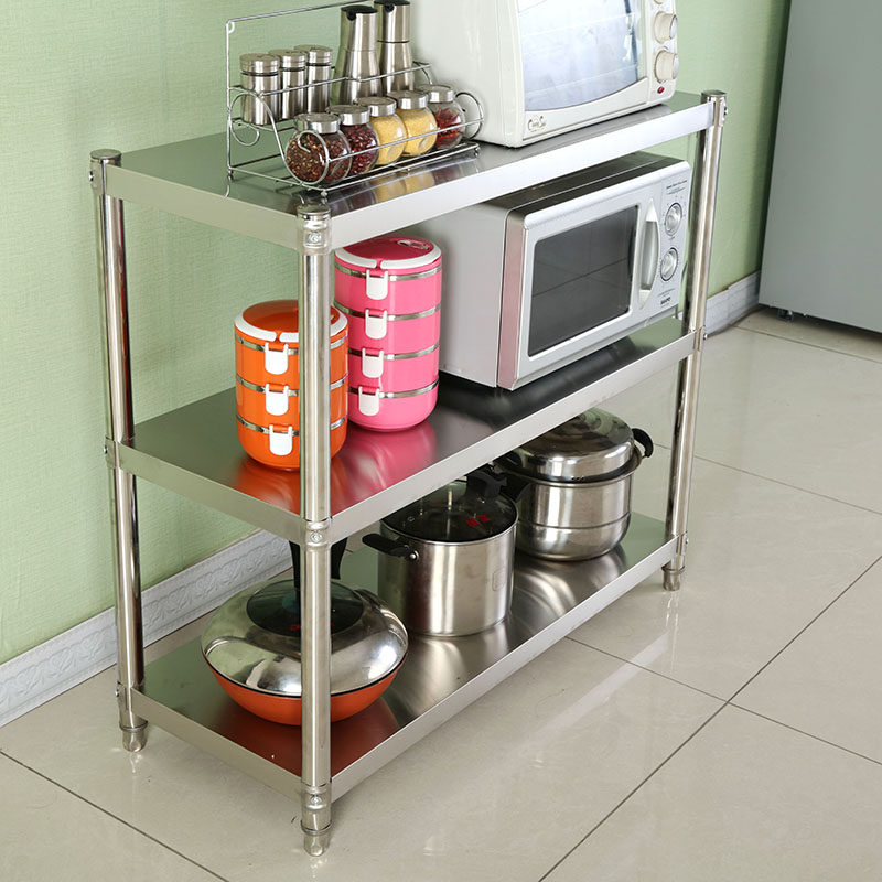 Kitchen shelf 3-layer microwave oven shelf storage shelf Stainless steel floor-to-ceiling three-layer oven rack pot rack