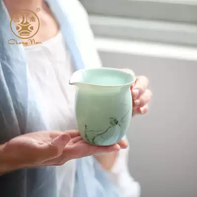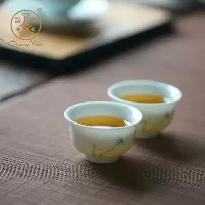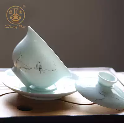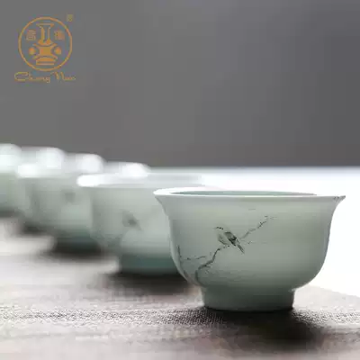 Changnan ceramic jade porcelain Happy eyebrow 8 heads glazed color Kung Fu tea set Jingdezhen ceramic cover bowl tea set