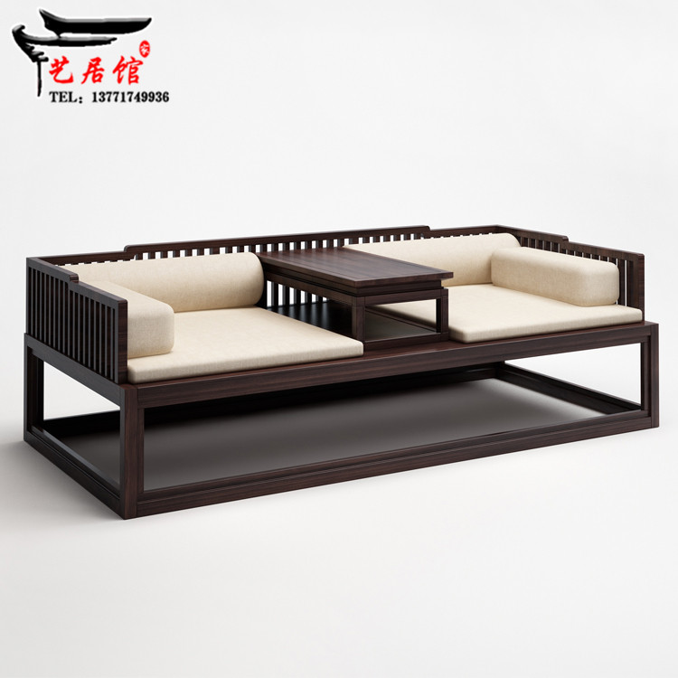 New Chinese style Arhat bed model room furniture solid wood fabric sofa teahouse Zen sofa Arhat collapse Chinese style bed