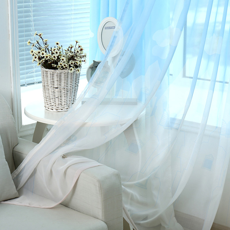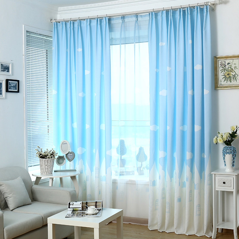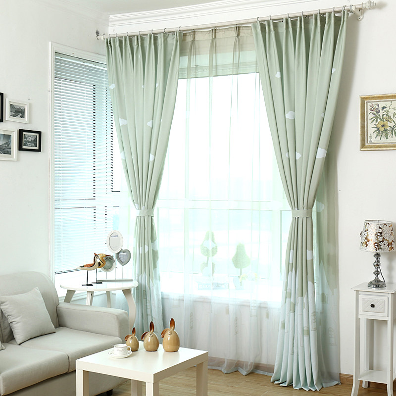 Modern minimalist printed semi-blackout curtain fabric fresh living room bedroom balcony bay window screen curtain custom children's room