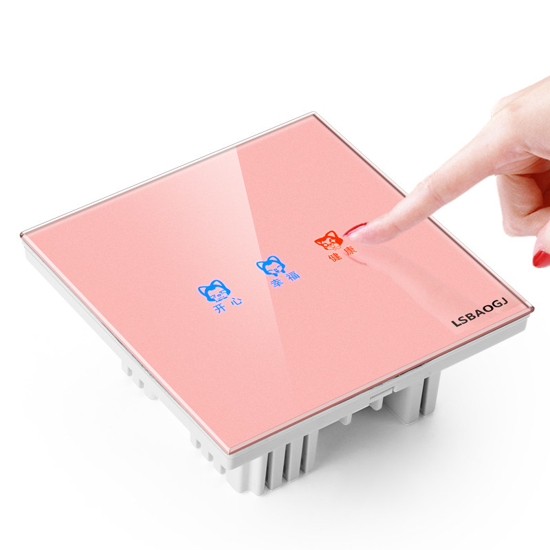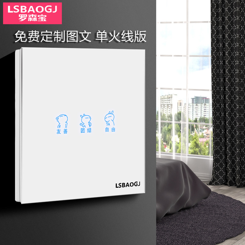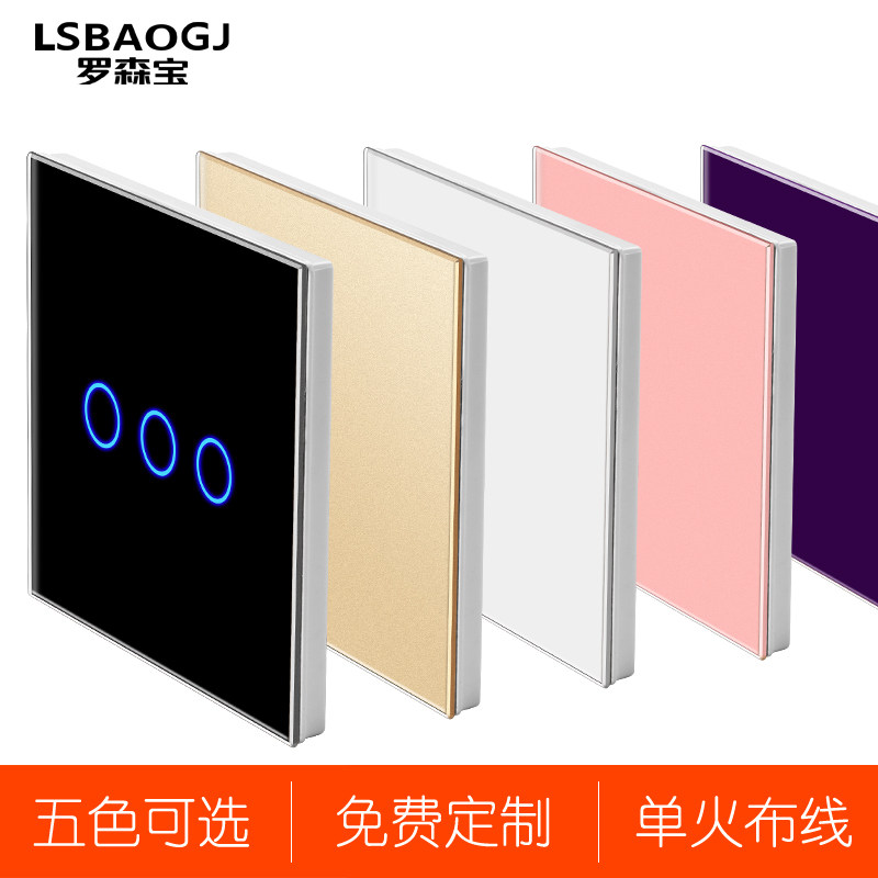 Intelligent touch-touch type switch for three-open single-control 86-type triple power switch single-firing power supply-text customization