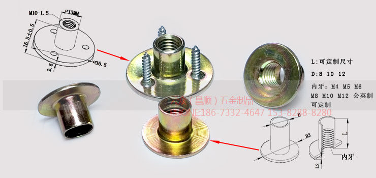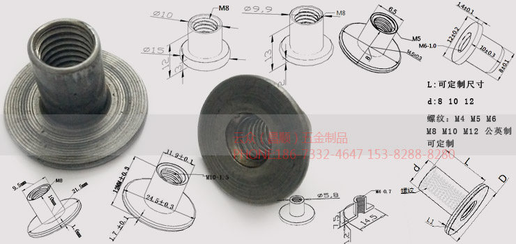 Step nut M10 T nut M10 Carbon steel galvanized cylindrical nut M8 curl nut M6