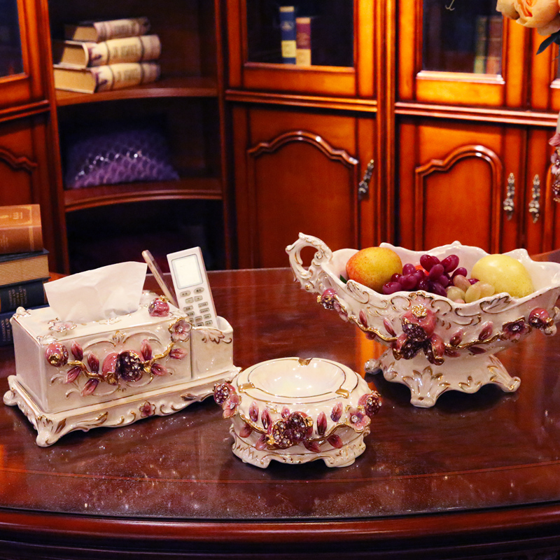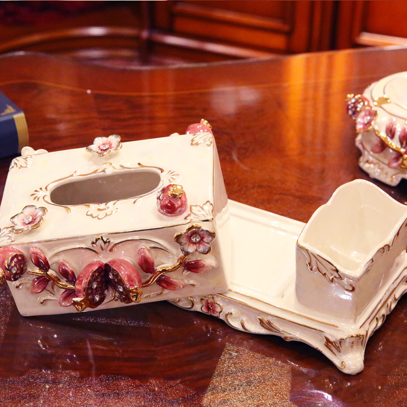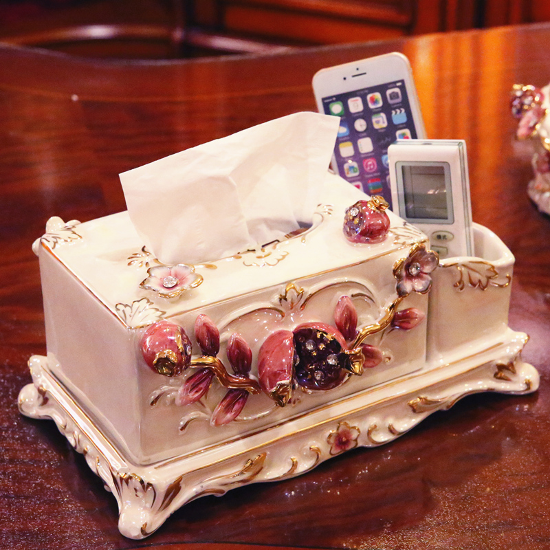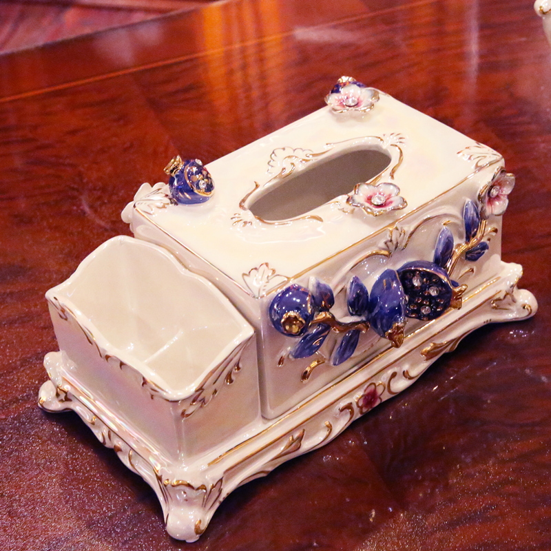 European-style ceramic paper towel box ornament home living room coffee table decoration multi-function draw carton remote control storage box