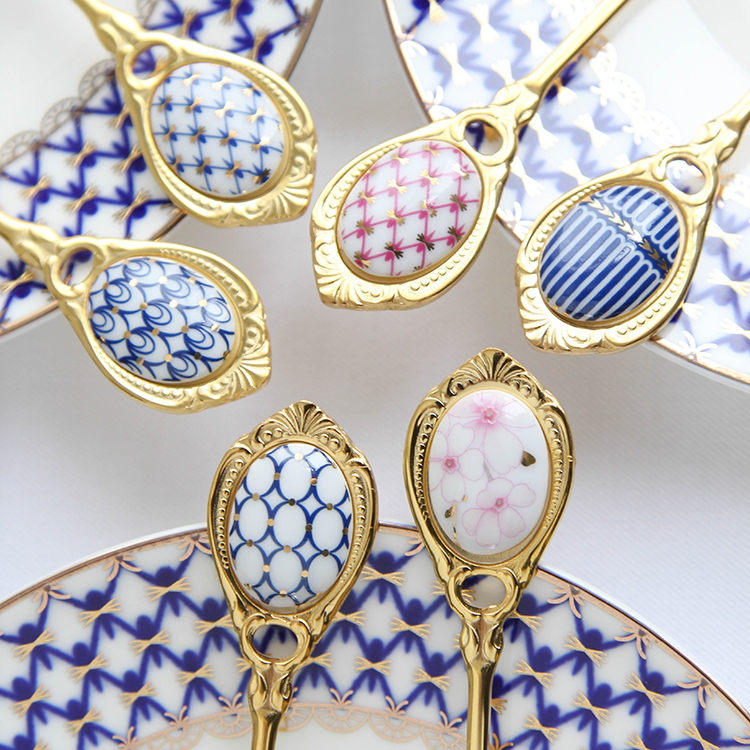 Coffee spoon Single (diamond blue grid) Coffee spoon single (diamond red grid)Coffee spoon single (British gentleman) Coffee spoon single (Blue circle) Two spoons gift box (default yellow and blue)Coffee spoon single (porcelain