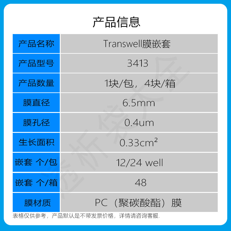 Corning Chamber CORNING3413Transwell Membrane Nested 6 5mm0 4um Pore Size PC Polycarbonate Membrane