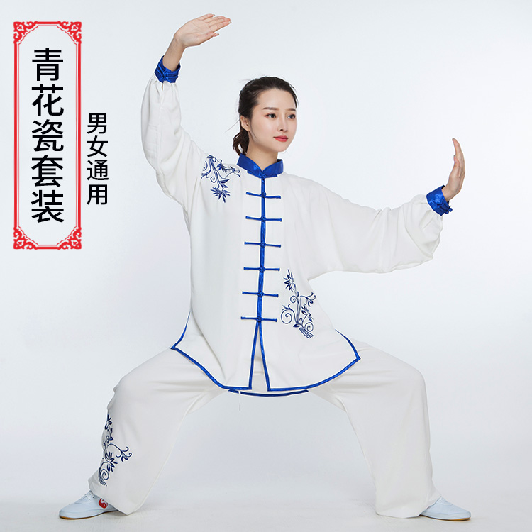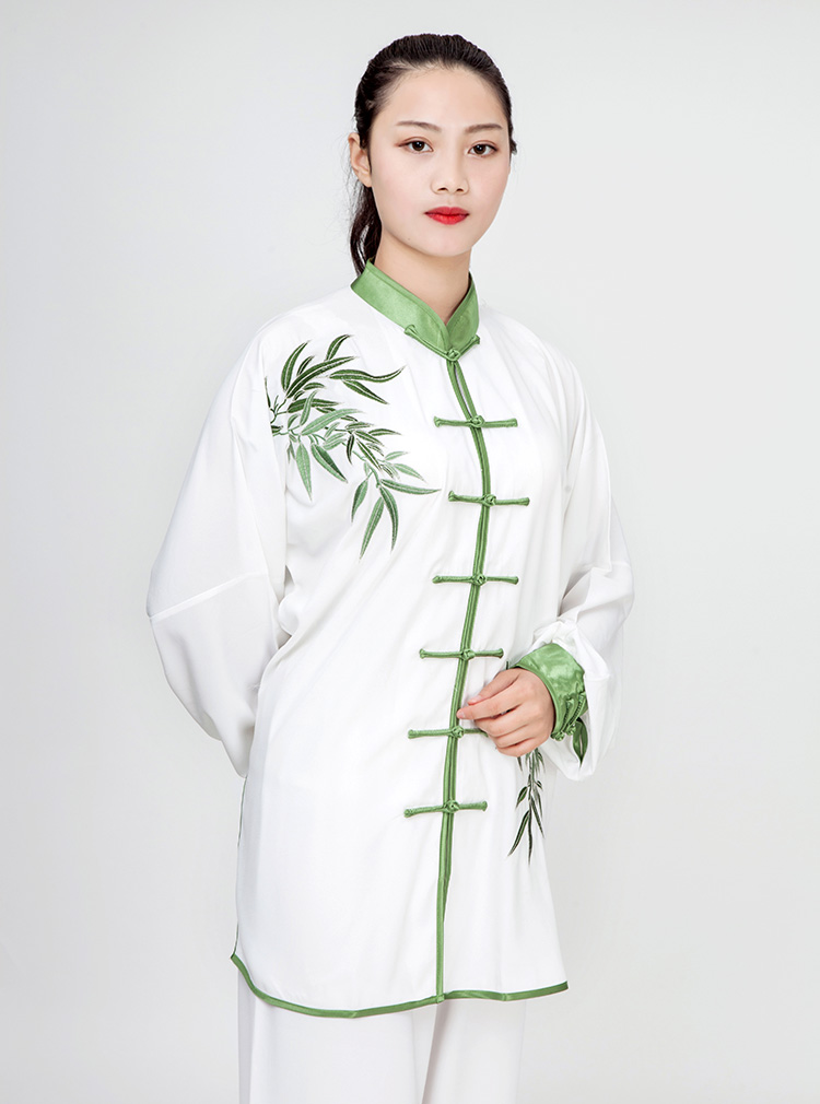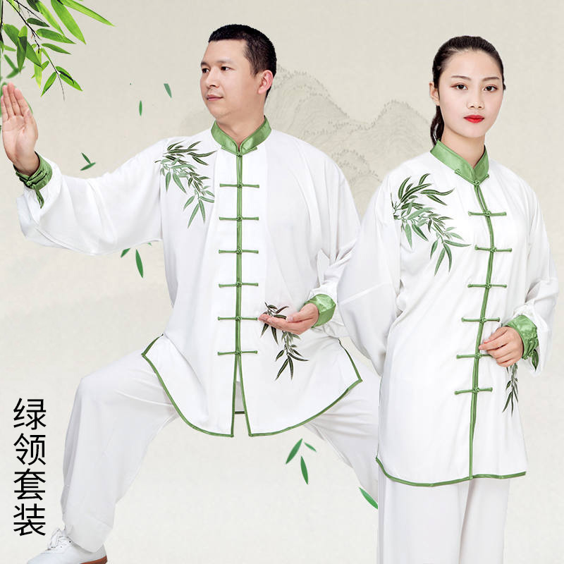 Tai Chi Fu Women Spring Summer Bamboo Leaves Green Flower Porcelain Embroidery Martial Arts Performance Martial Arts Performance Competition Taijiquan Costume Men China Wind