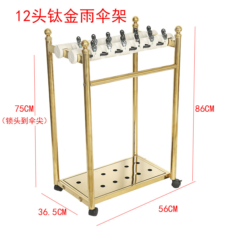 Titanium Alloy Umbrella Stand Hotel 12 Head 18 Head 24 Head Round Pipe With Lock Luxury Umbrella Stand Lobby Large Lock Hanging Umbrella Containing Deck Shelf