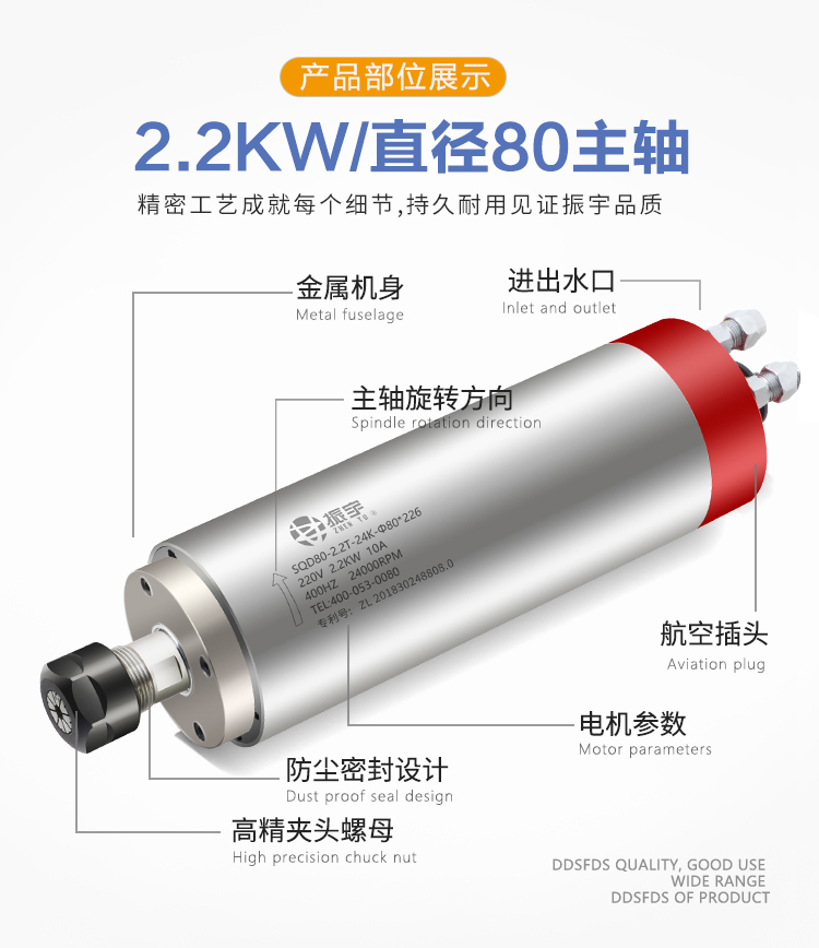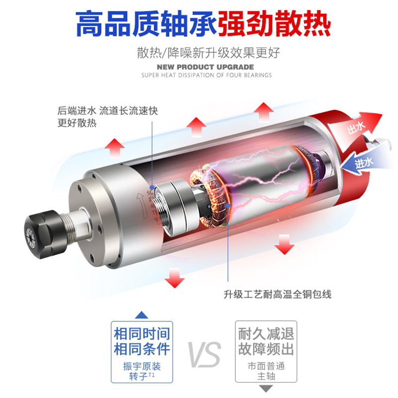Ceramic bearing 2 2KW spindle motor high speed water cooling motor CNC computer woodworking stone engraving machine accessories