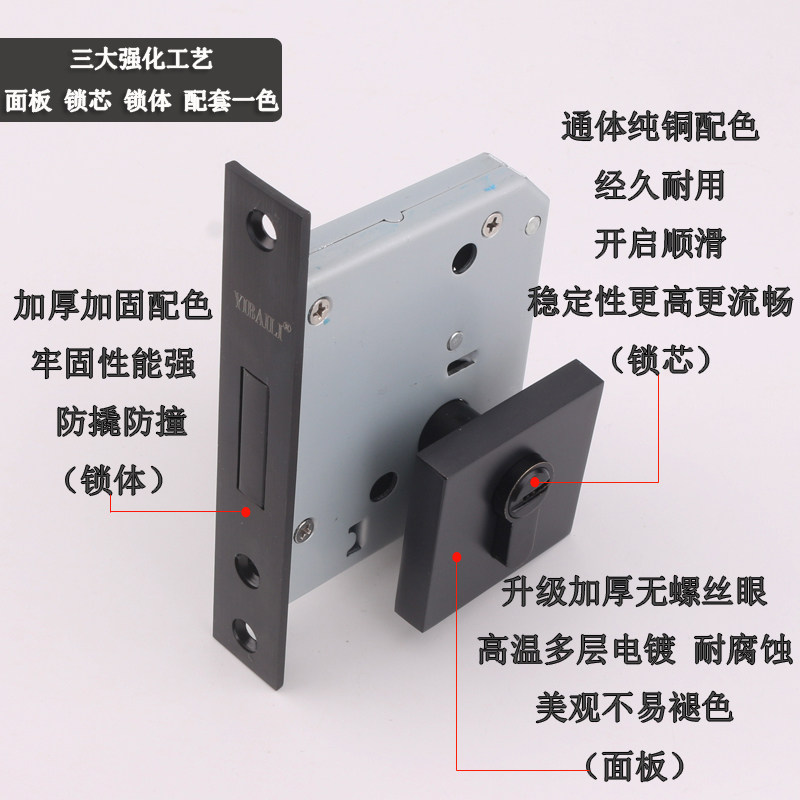 Black auxiliary lock lock bronze single-sided lock golden channel lock fire door lock no handle lock invisible door lock