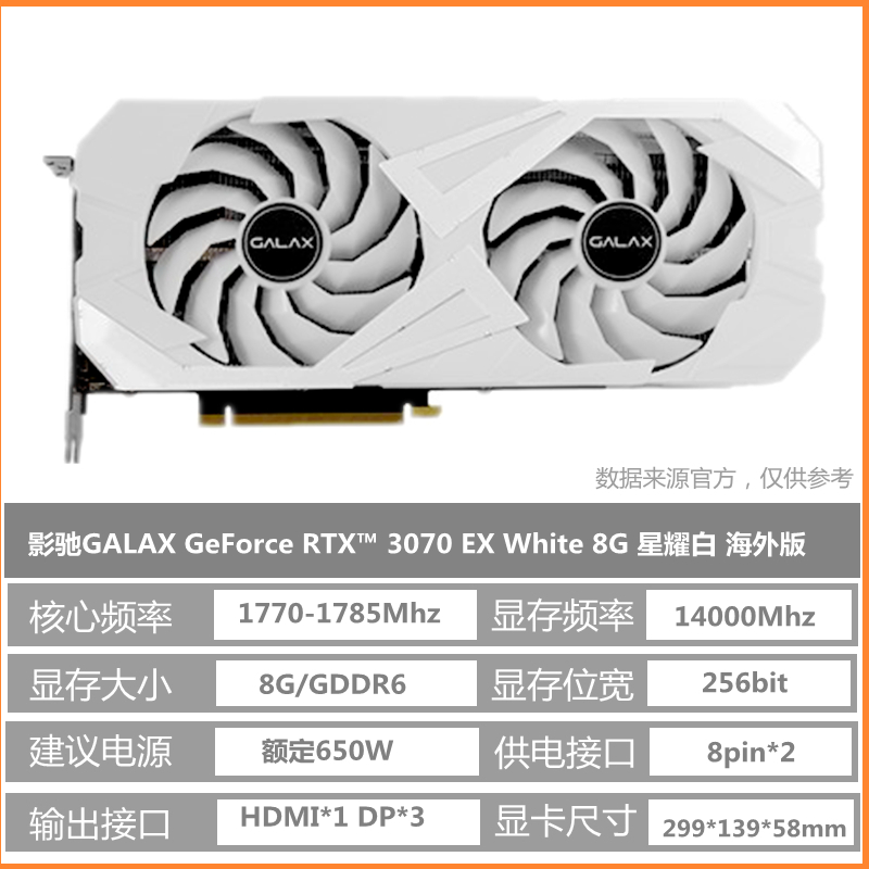 Galaxy Removal Galaxy RTX 3070 8G EX Star Yao Overseas Edition White Black Computer Game Graphics Card