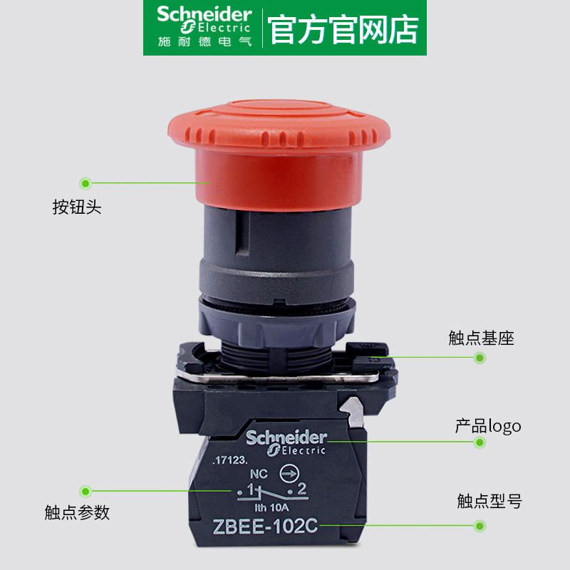 Schneider emergency stop switch 22mm rotary reset XB5AS542C emergency stop button ZBEE-102C
