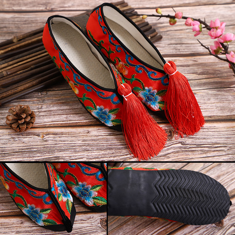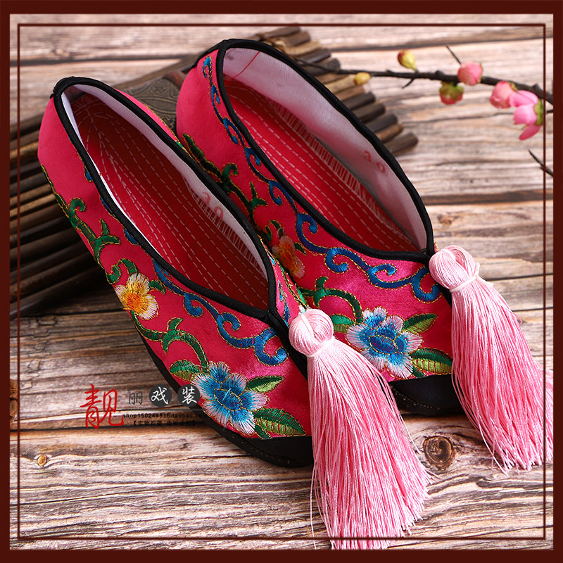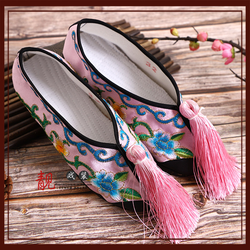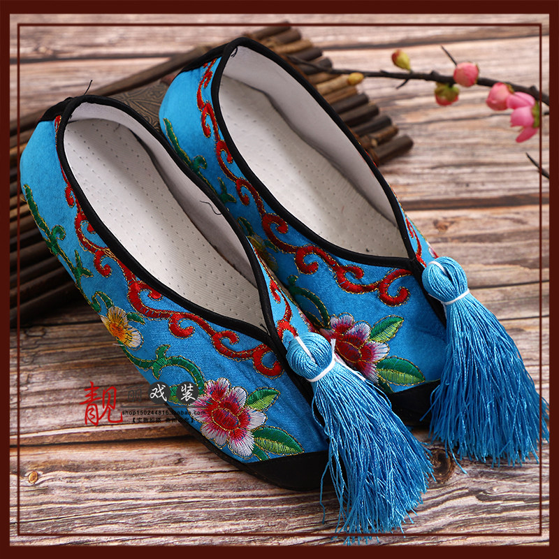 Drama Opera Embroidered Shoes Color Shoes Peking Opera Classical Dance Performance shoes Tsing Yi Flowers Denier Flat Color Shoes