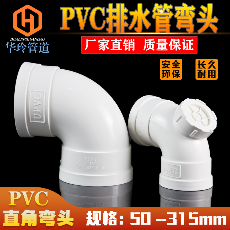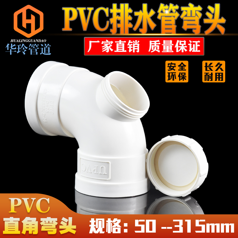 PVC drainage pipe 90 degree elbow straight elbow sewer pipe 90 degree elbow with inspection port 50 75 110 160