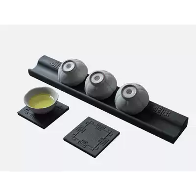 Genyun natural whole piece of black gold stone tea pad Stone tea table kung fu tea set Tea Sea Cup holder Kuilong pattern cup holder