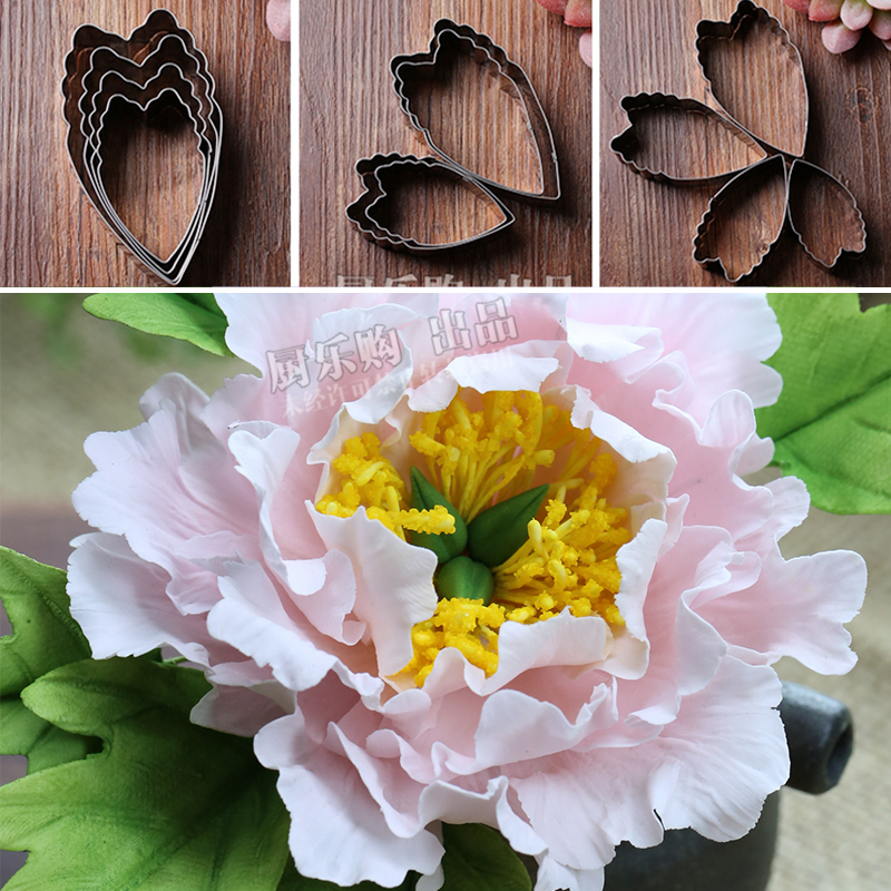 Fondant peony flower mold Stainless steel cutting mold petal fondant silicone mold Dry pace vein pattern mold