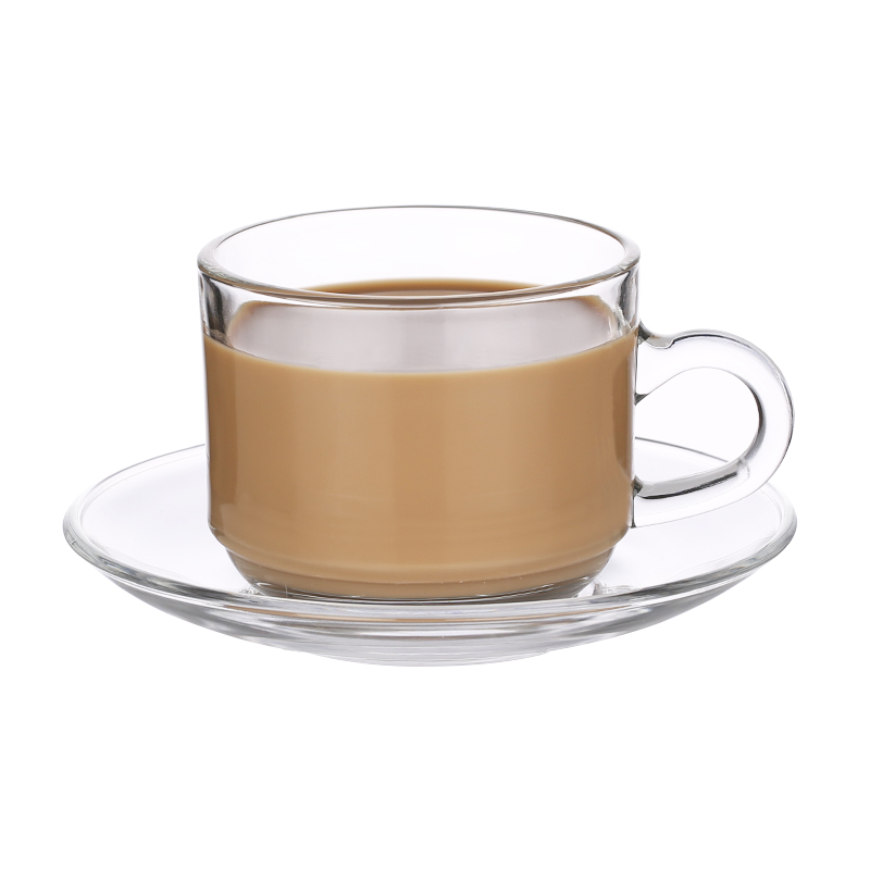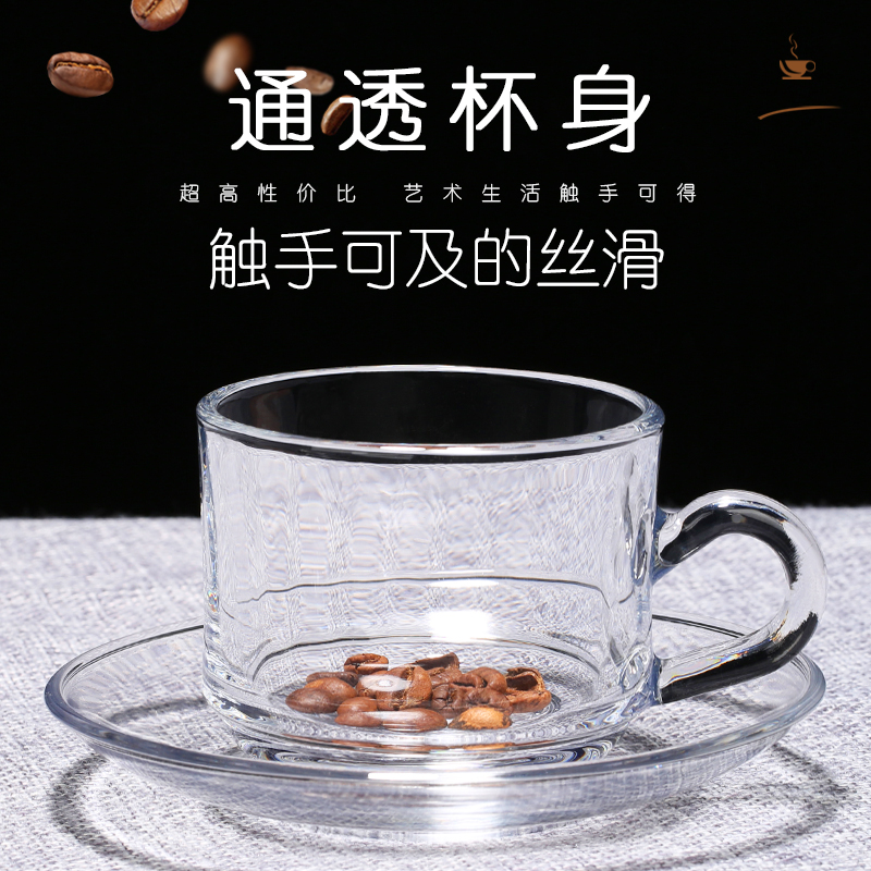 Household glass European-style transparent coffee cup Flower tea cup Heat-resistant handle cup Small teacup Hot drink cup Milk cup set