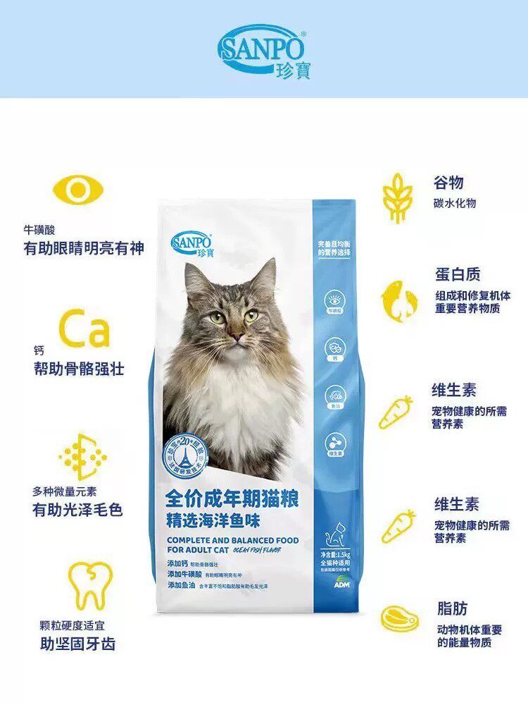 Precious Treasure Cat Food Selected Marine Fish Into Cat Food Increase Fat Hair 1 5kg-Taobao