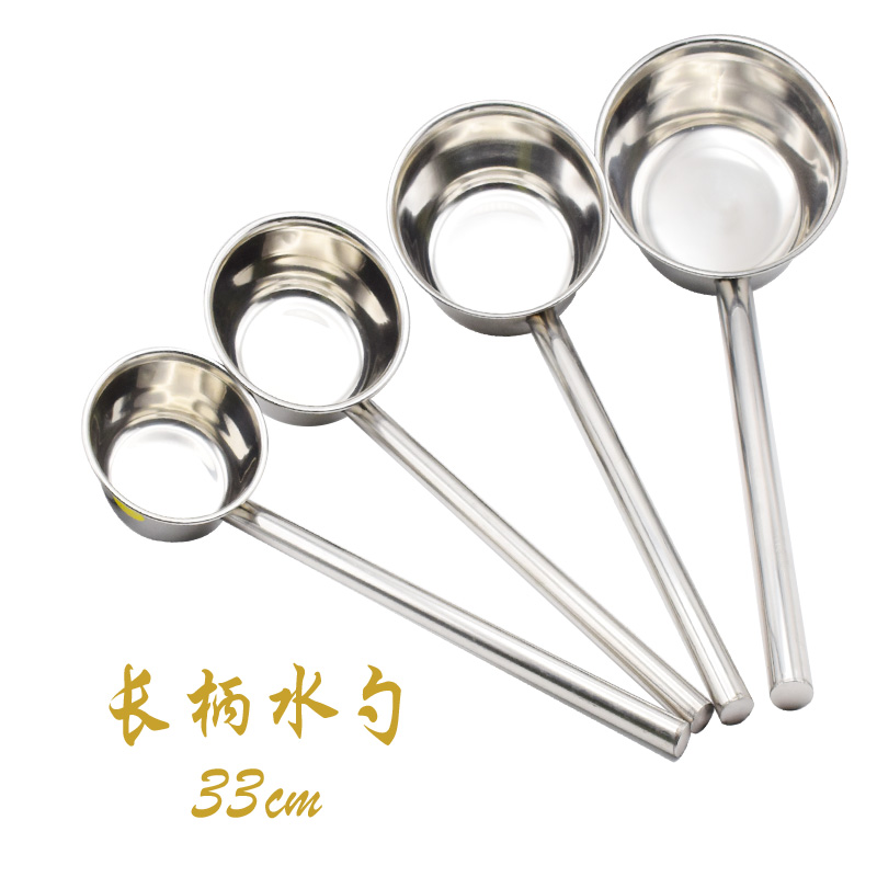 Extra Thick water scoop stainless steel spoon water scoop kitchen with long handle large Spoon thick and solid drop-resistant soup scoop spoon cooking porridge