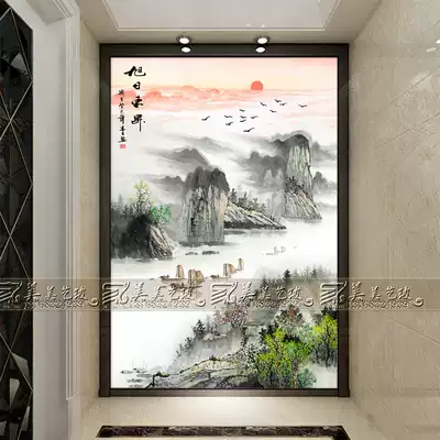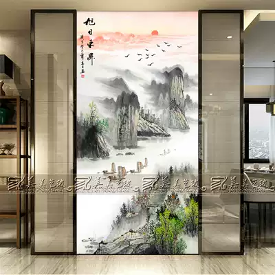Modern art glass screen partition living room entrance background wall decoration frosted steel process simple landscape painting