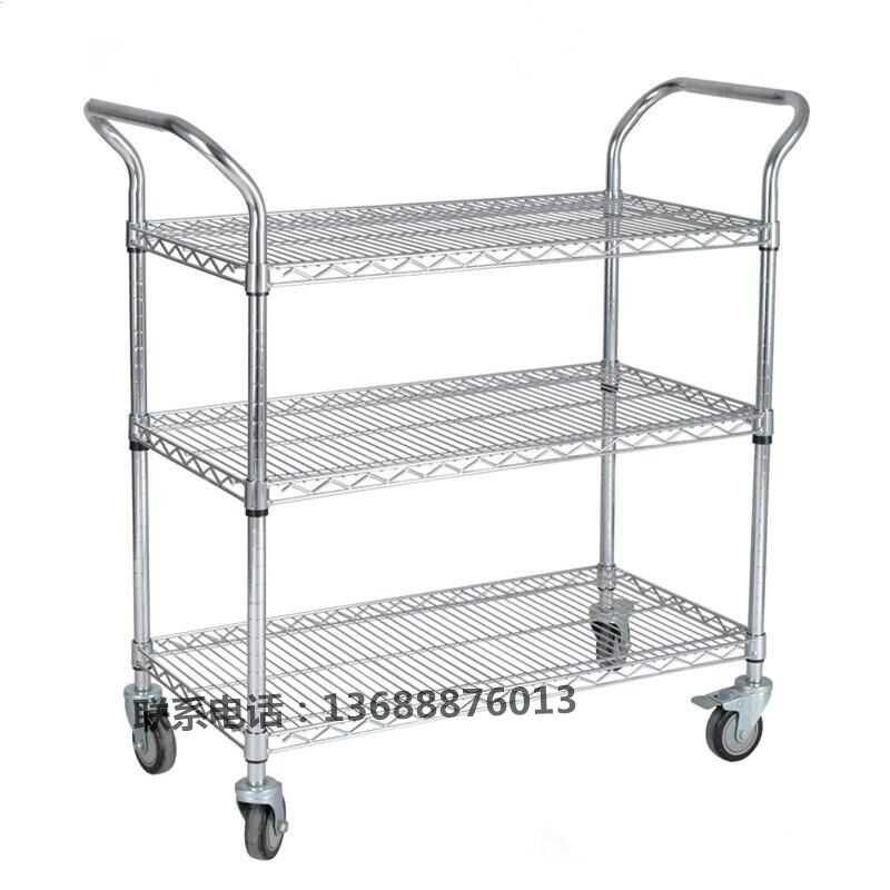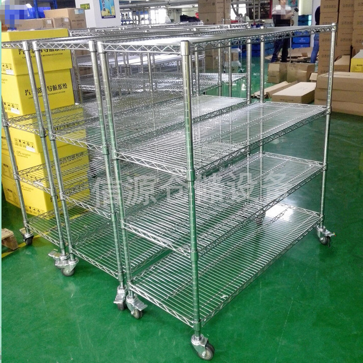Stainless Steel Plated Chrome Wire Mesh Shelf Warehousing Storeroom Material Shelf Cycle With Wheels Mobile Cart Home Shelving Shelf