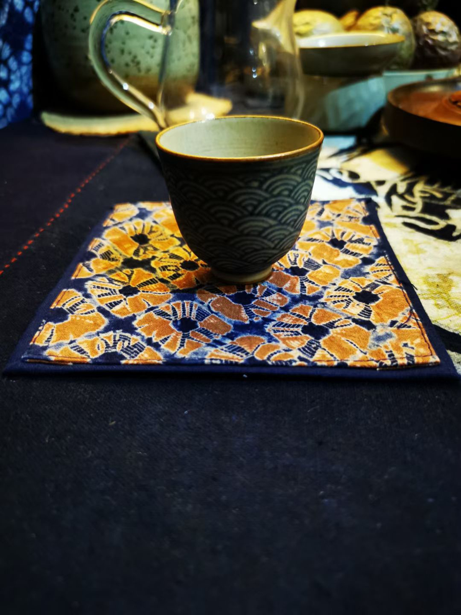 Yunnan special gift hand embroidered embroidered coaster Meijia Cafe blue dyeing jewelry diy tea mat patchwork coaster